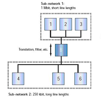 CANリピーターと異なり、CANブリッジは最大ネットワークサイズを拡張させることができます。その際にサブシステムはバスアービトレーションについては完全に自己完結して行います。ブリッジによって接続しているCANサブネットワークは、リアルタイム”Behavior”に関してお互いに独立しています。そして独立したネットワークとして考慮されます。