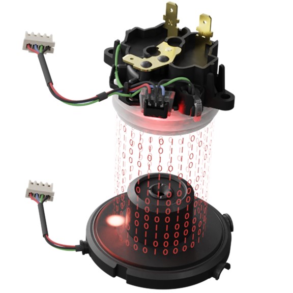 Otter社のCP8 360º耐洗浄型コードレスコネクタ(右側写真上部)は定期的な洗浄が必要な、ミルクウォーマ、コーヒーメーカ、スープメーカ、ティーメーカなどの機器に最適です。