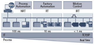 PROFINET標準は、3つの異なるパフォーマンスレベルを定義しています。それらは、異なるアプリケーションのさまざまな要求をカバーしています。