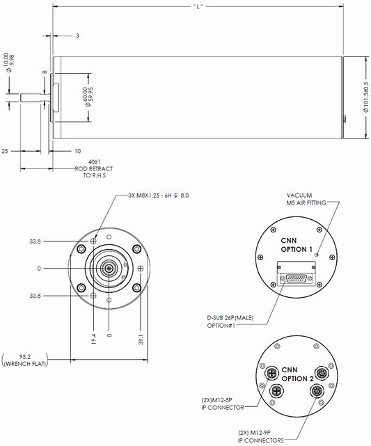 | 本体寸法 (ロッド除く) | φ101.5×360 mm | φ101.5×400 mm | φ101.5×450 mm |