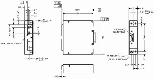 | ケーブル/端子仕様 | 標準: ピッグテール (ケーブル長:0.5m, 端子:HD26オスに統合) オプション: フライングリード (ケーブル長:3m, 信号線:Dsub15オス+電力線) |
