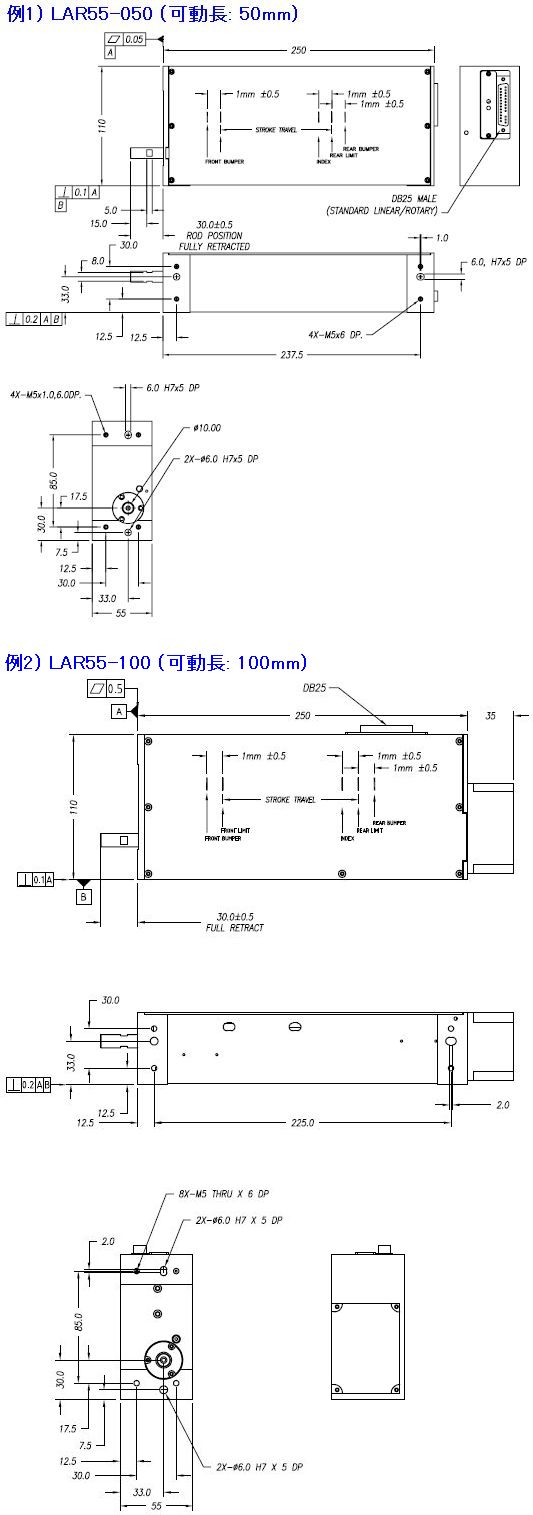 | LAR55-050-55-1 | 50 mm | 24 V | リニア: VCM / 1コイル 回転: ブラシモータ | リニア: 5 μm 回転: 2,000 CPR |