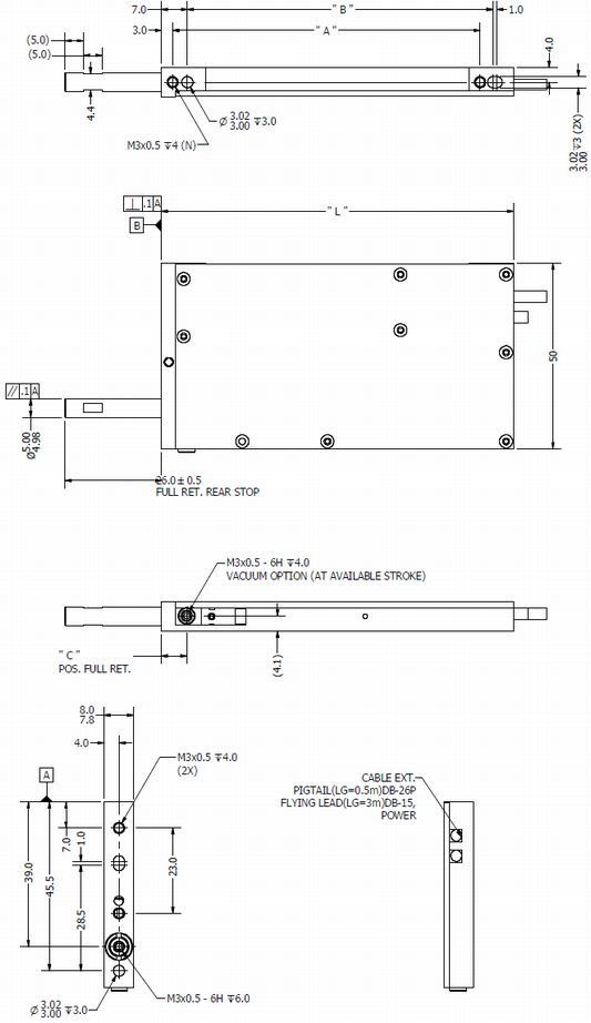 | エンコーダ仕様 | Quad ABZ(差動), 分解能: 5 μm (オプション: 1 μm) | ||